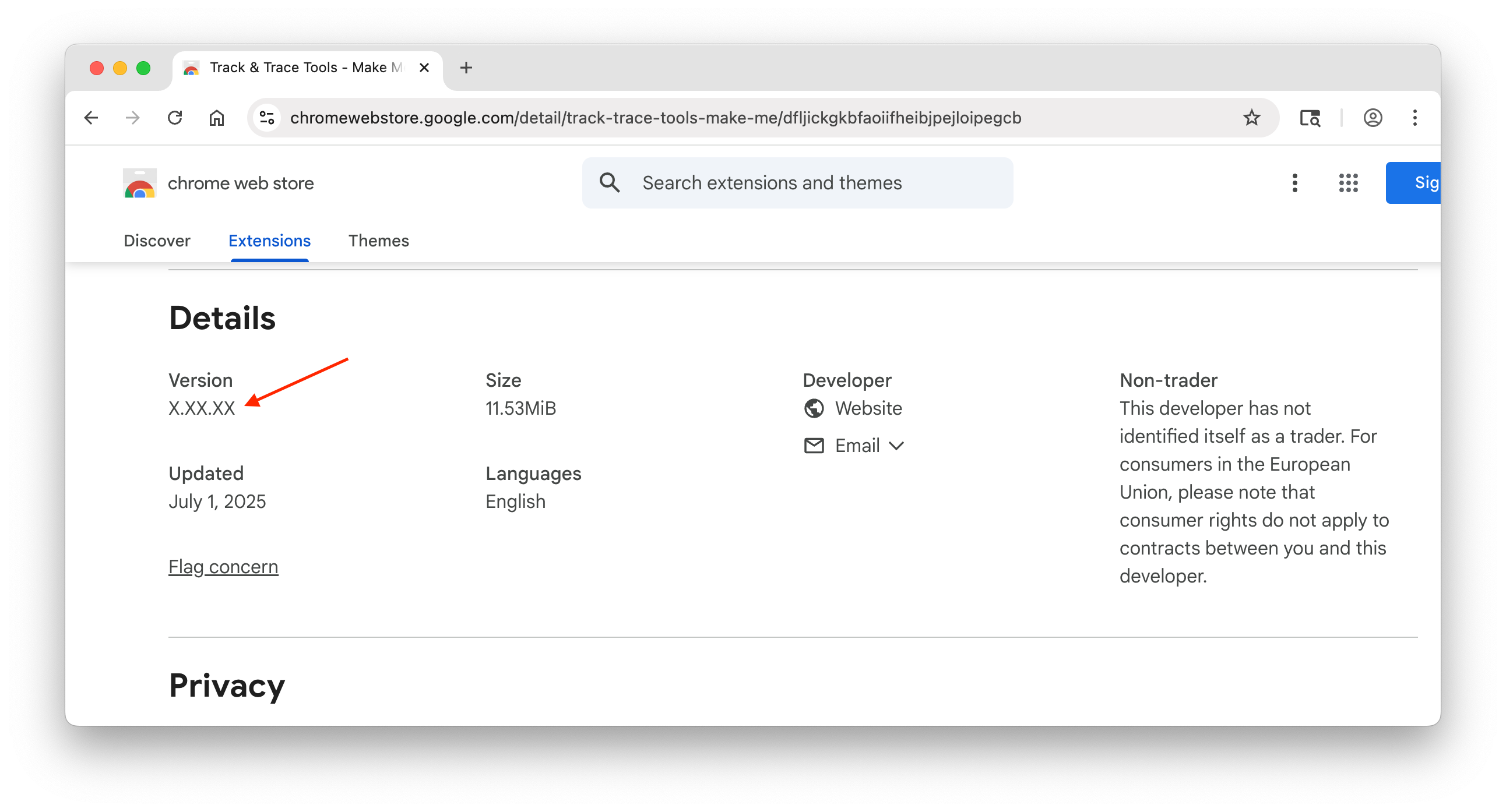 If it doesn't match the version installed in your browser, your extension is out of date.