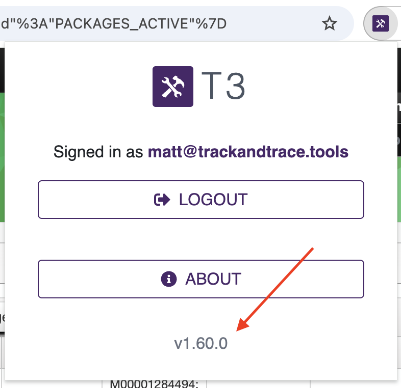 Finding your installed T3 Chrome Extension version