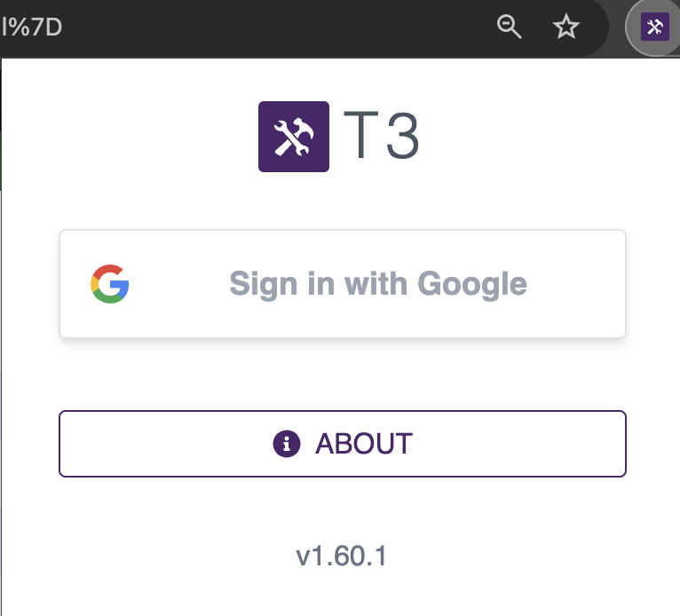 If you want to connect T3 to your Google account, click the T3 icon in the browser navbar (next to the URL bar) and click Sign In with Google.