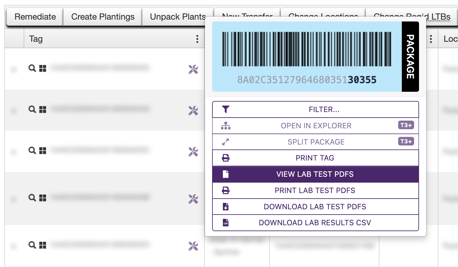 T3 offers a suite of tools for rapidly performing large-scale package compliance tasks. Tools intelligently allocate tags and correctly manage strains and items.