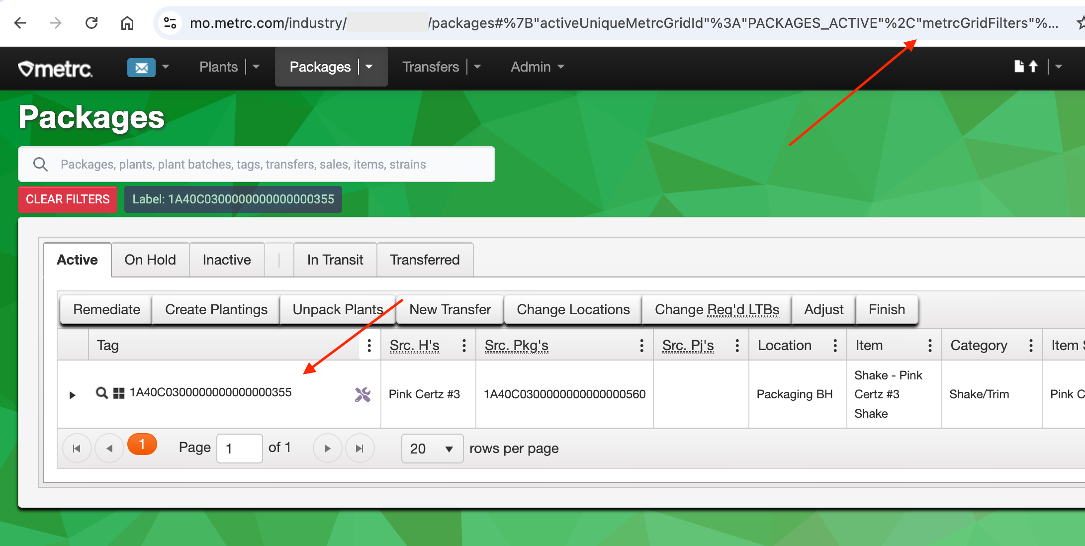 When using T3, everything in Metrc has its own link. Apply filters to any Metrc table, then use the current URL to re-apply all existing filters.