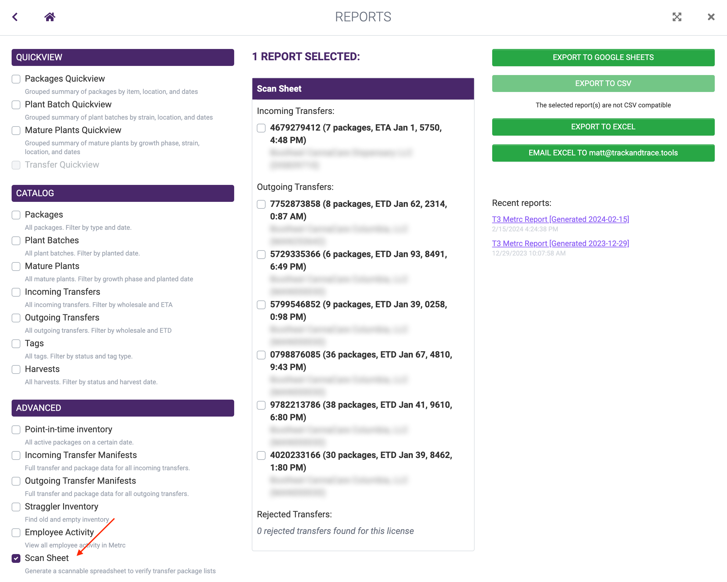 - Browse the rest of the T3+ Exports for related reports (manifests, lab results, point-in-time inventory).