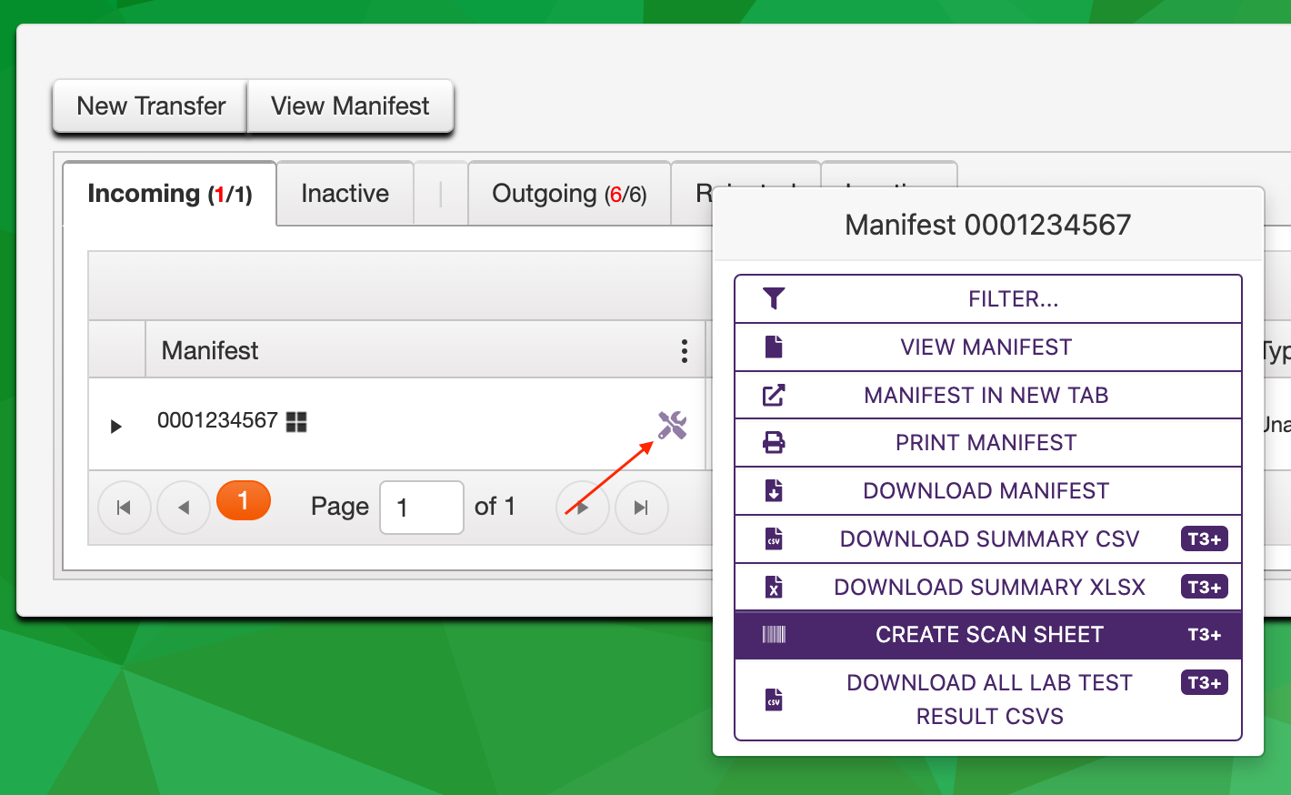 Scan sheets can be generated either from the transfer table button, or from the T3 Reports page: