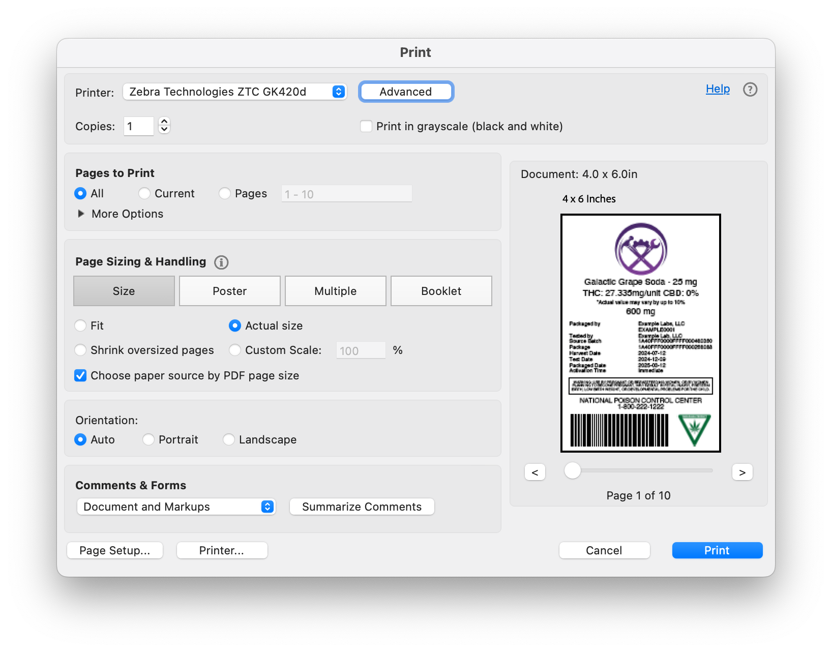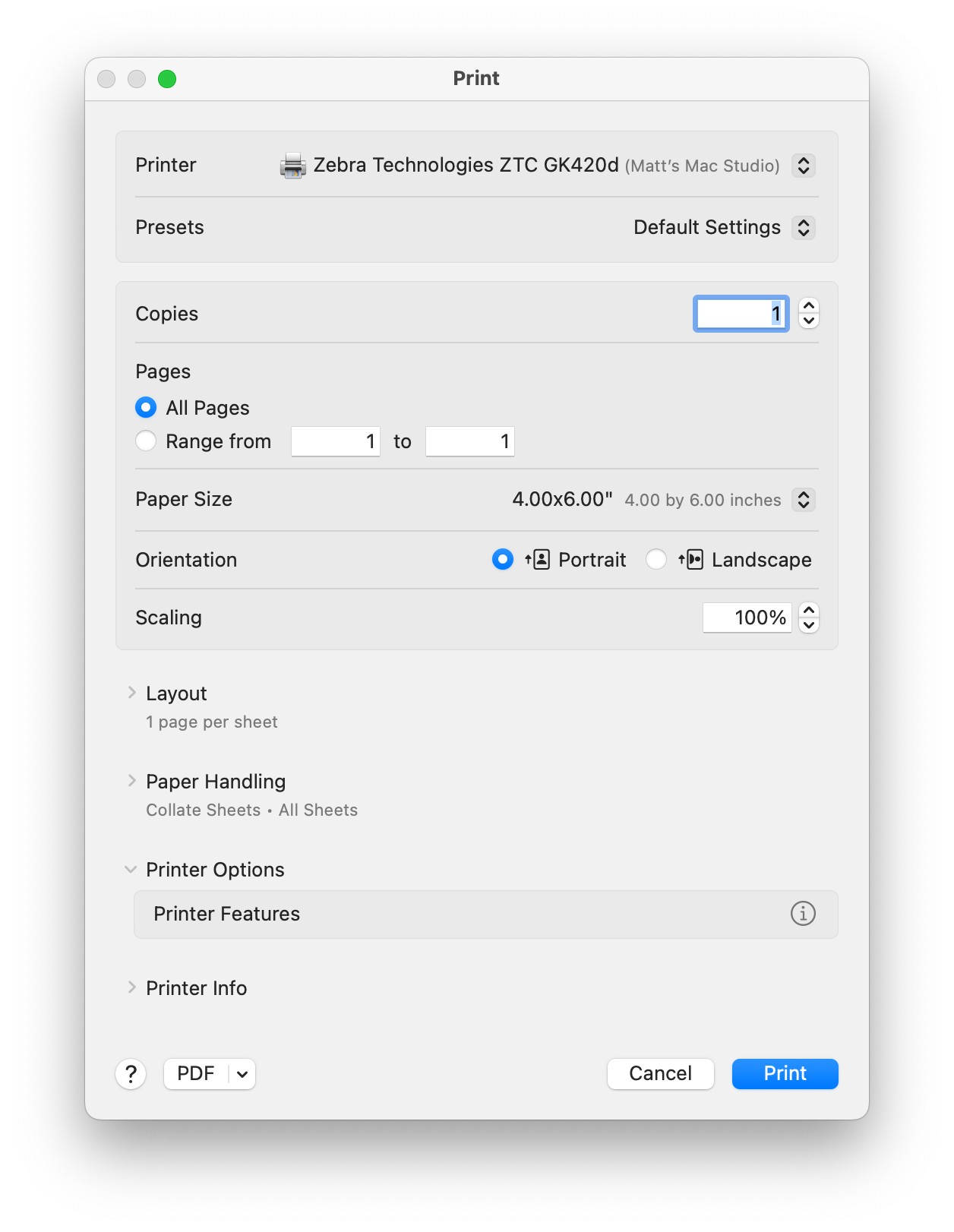 Once you have your label PDF and your printer is ready to print, you will need to configure how your label printer handles PDFs.