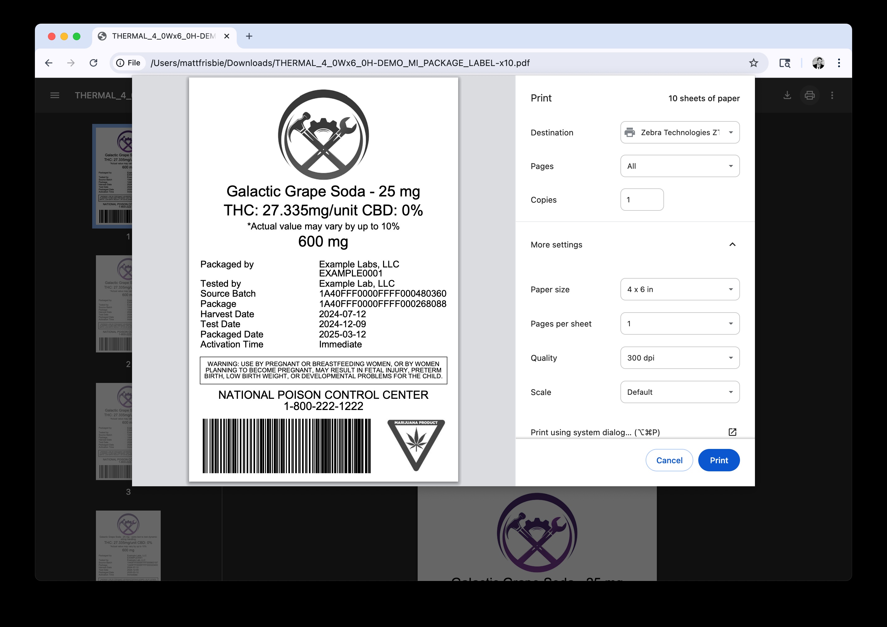 Once a label PDF is generated, it can be sent directly to your printer for printing.