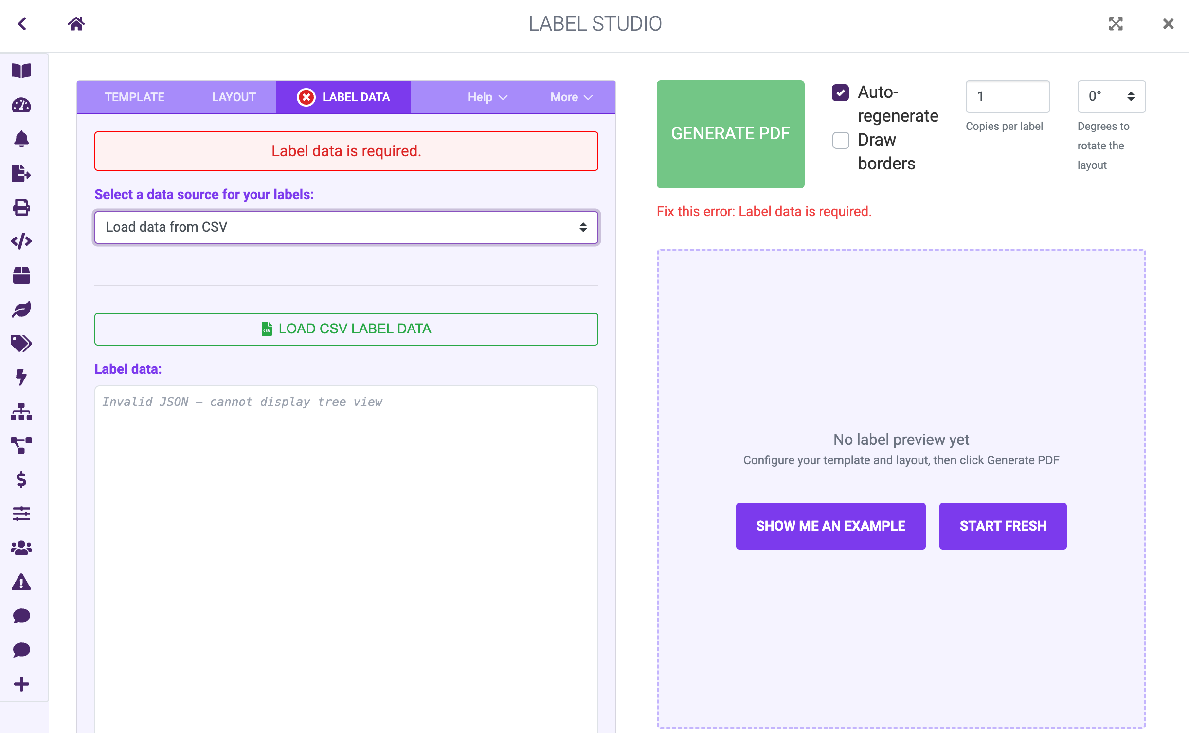 - Click the LOAD CSV LABEL DATA button